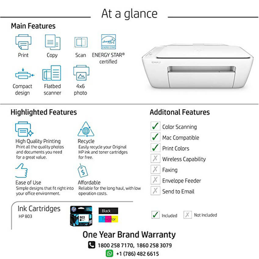 Features Just what you need-right away Count on easy versatility. Print, scan and copy what you need quickly with a reliable all-in-one. Easy from the start Get started in fewer steps. Easily set up this all-in-one to print, scan and copy with simple controls. Save your space with a compact all-in-one designed to fit on your desk, on a shelf or anywhere you need it.